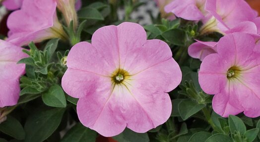 Zeer compacte Petunia met mooie bloemen die zachtrose zijn. Petunia’s zijn zeer geschikt voor in hangpotten. De Petunia Bonnie serie blijft zo compact dat deze ook in staande potten te verwerken is. Hang ze in volle zon of een beetje schaduw. Verwijder regelmatig verwelkte bloemen, kortwiek evt. De plant voor volop nieuwe bloemen later in het jaar.